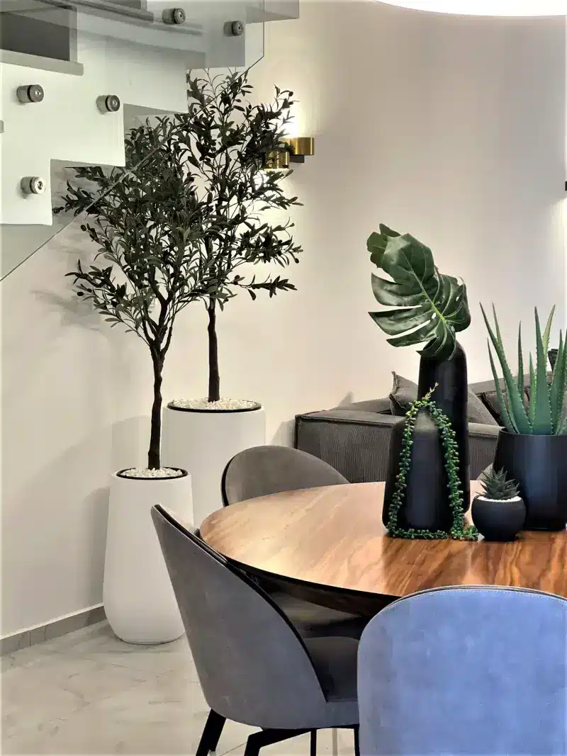 בשילוב עץ זית מלאכותי וחיפוי חלוקי נחל לבחירה