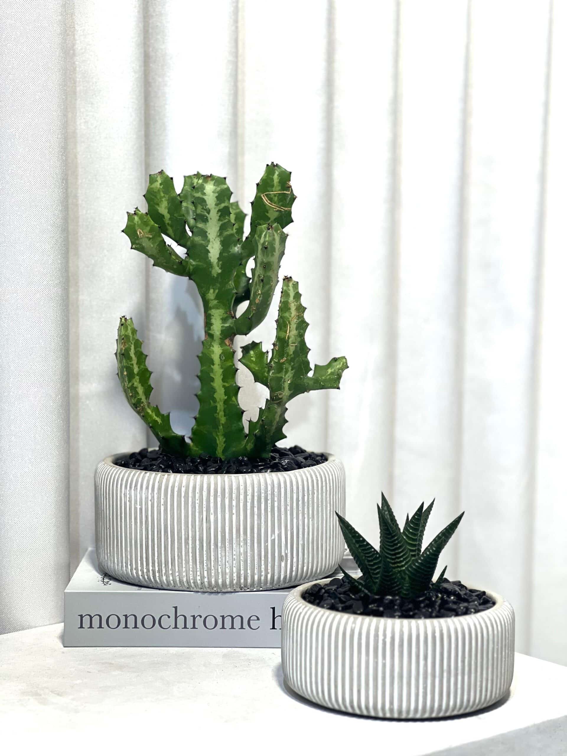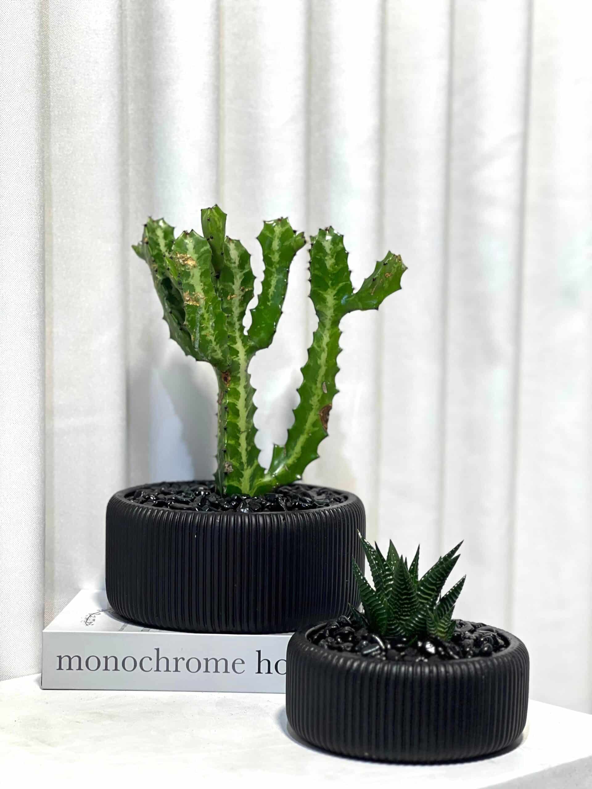בשילוב קקטוס טבעי וסוקולנט ירוק