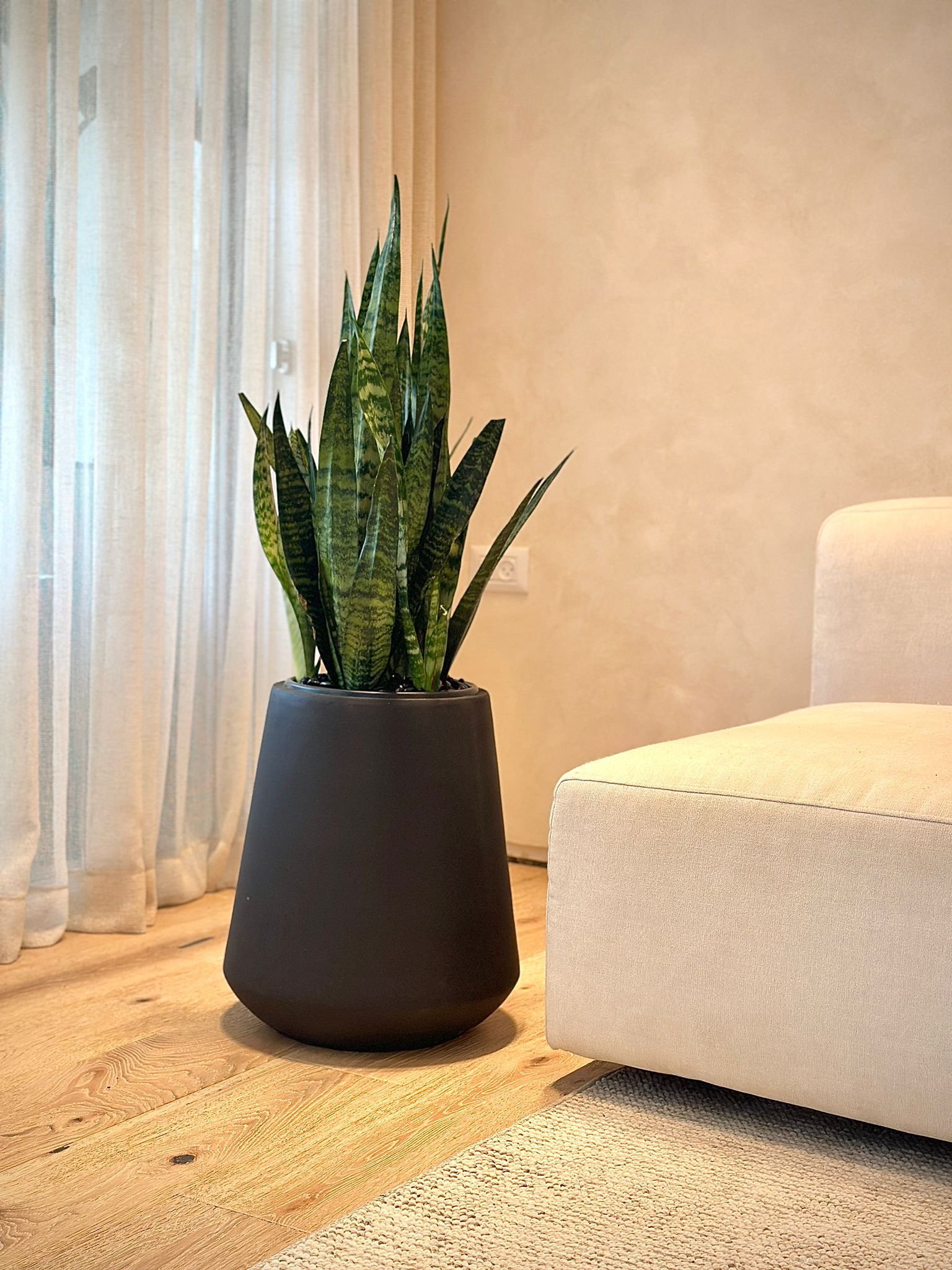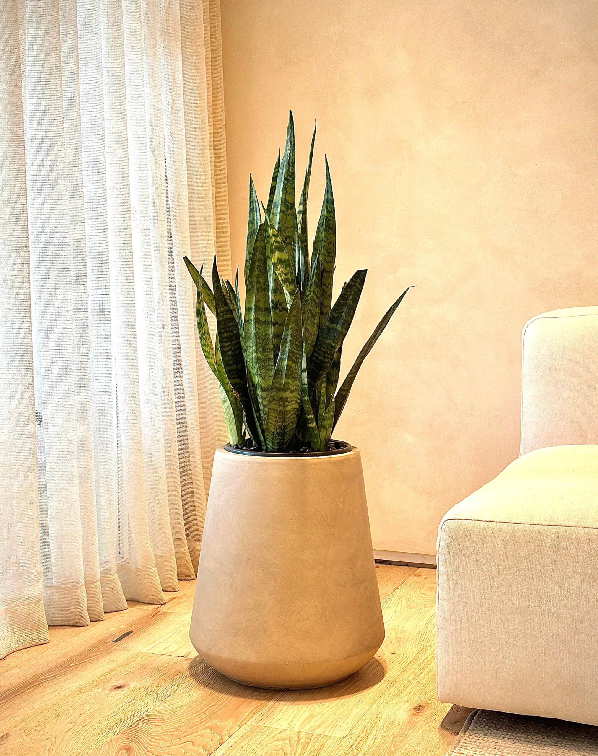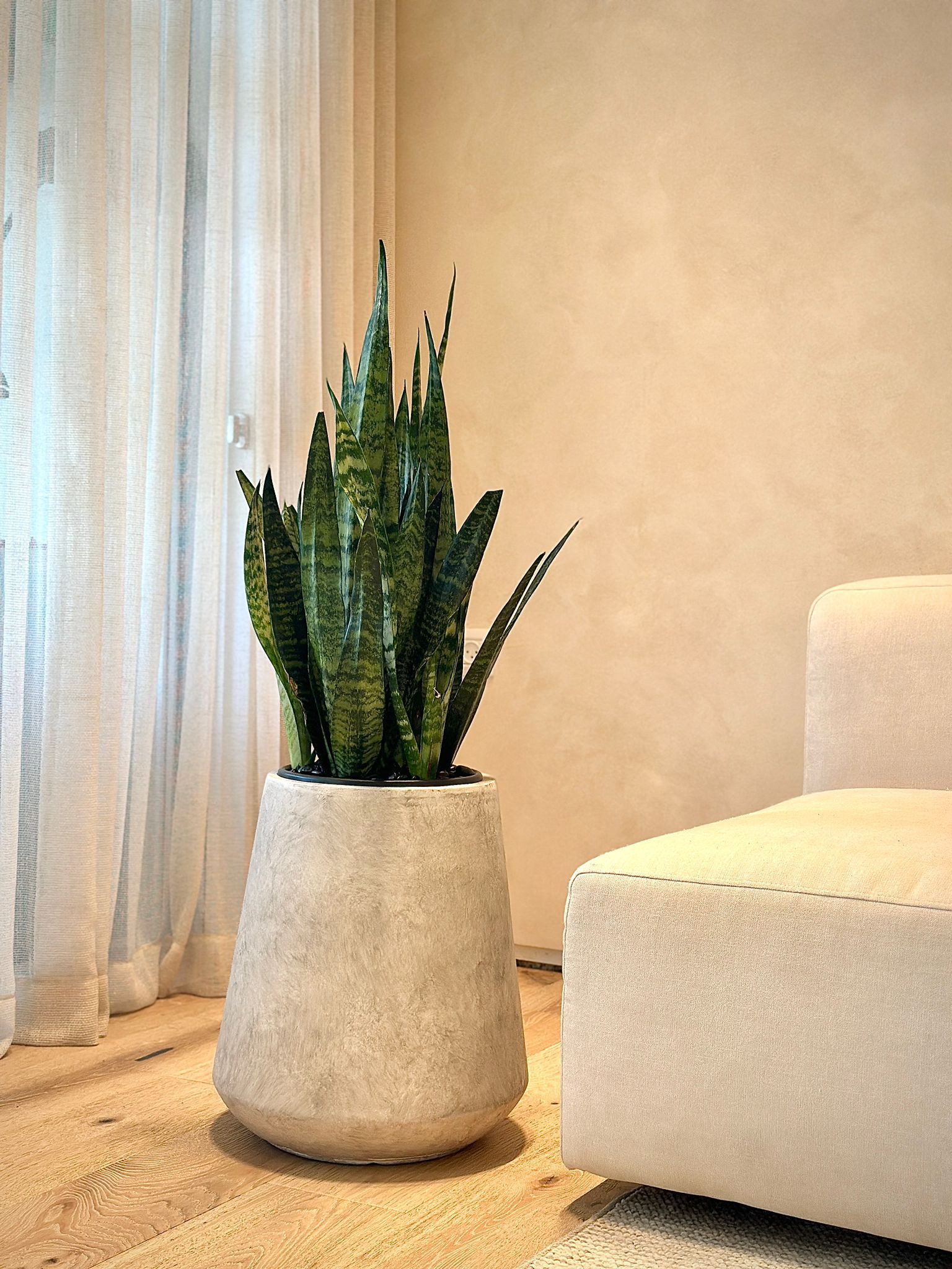 כד בטון 45 AVANI בשילוב סנסיווריה טבעית ירוקה