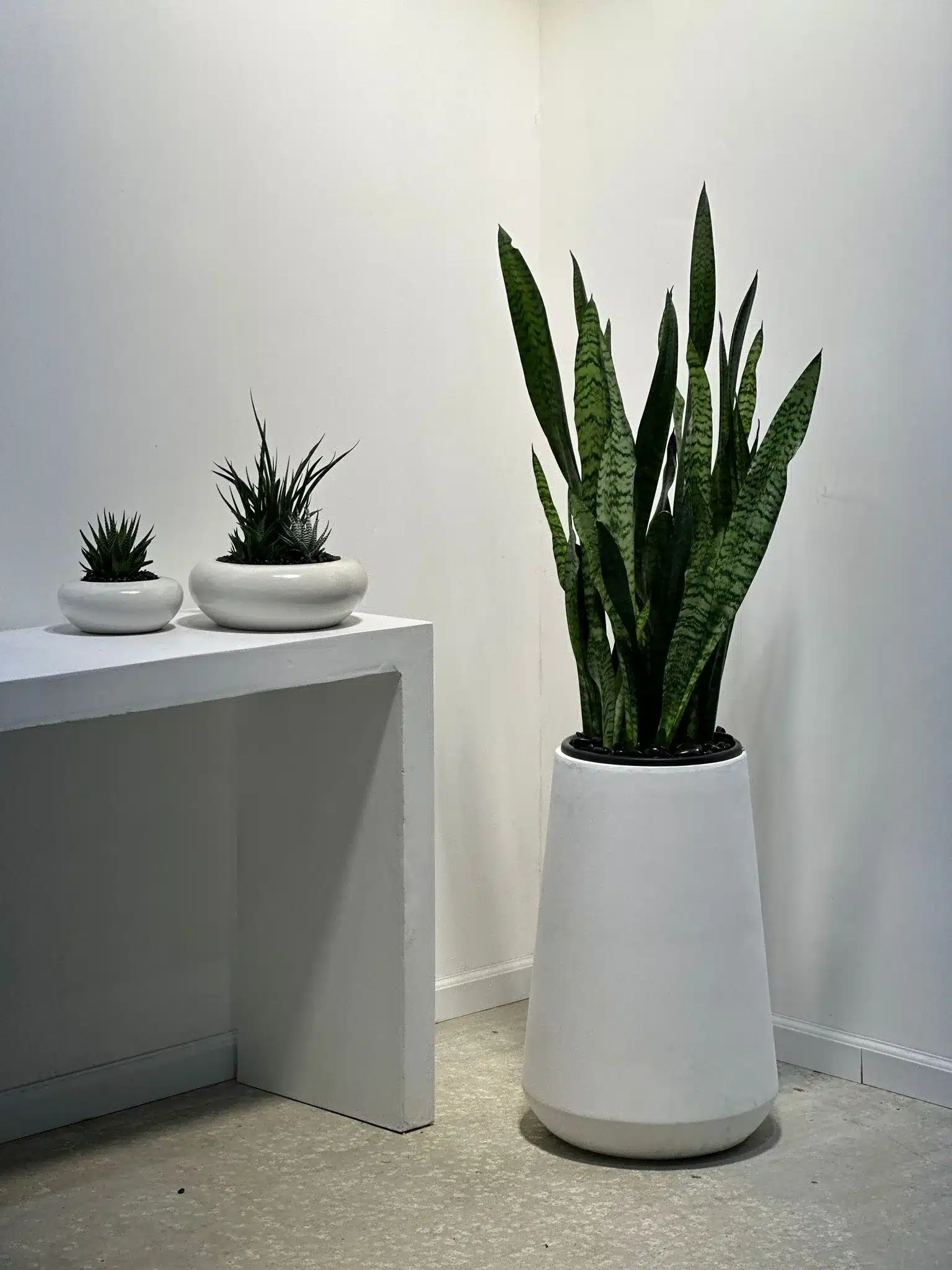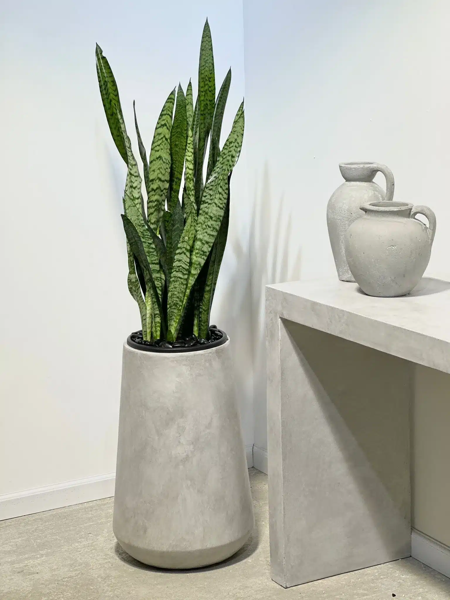 כד בטון 60 ס”מ בשילוב סנסיווריה ירוקה טבעית