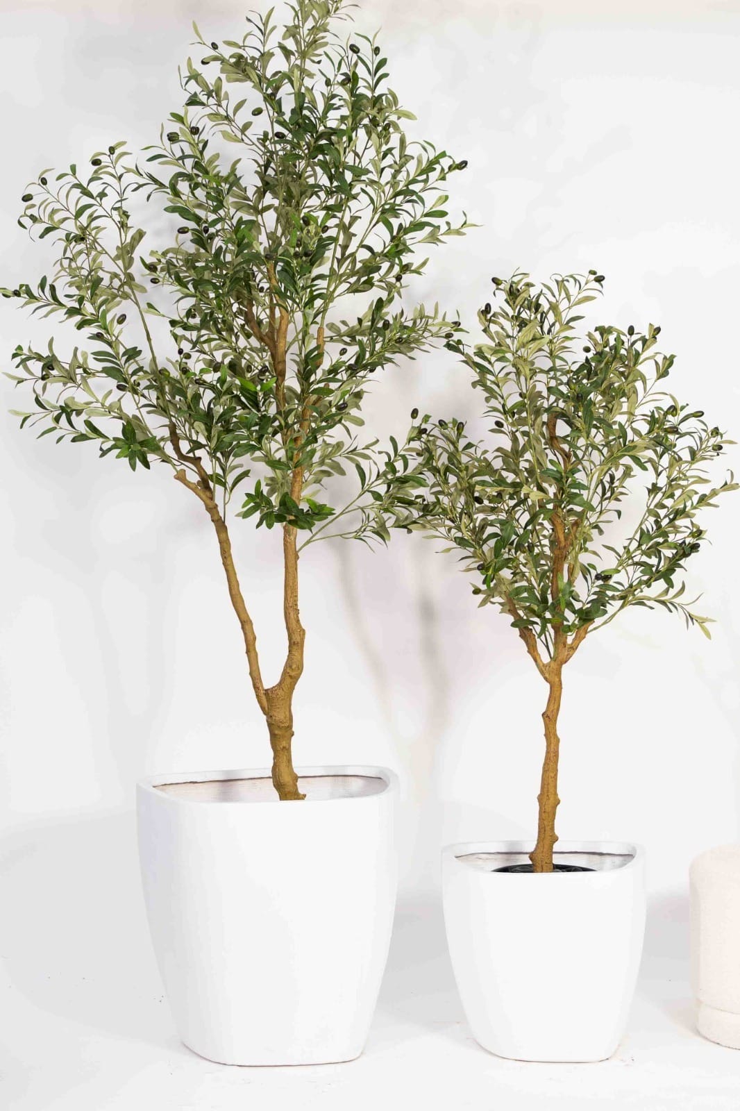כד בטון אמורפי מעוצב ויוקרתי בשילוב עץ זית מלאכותי גדול / ענק