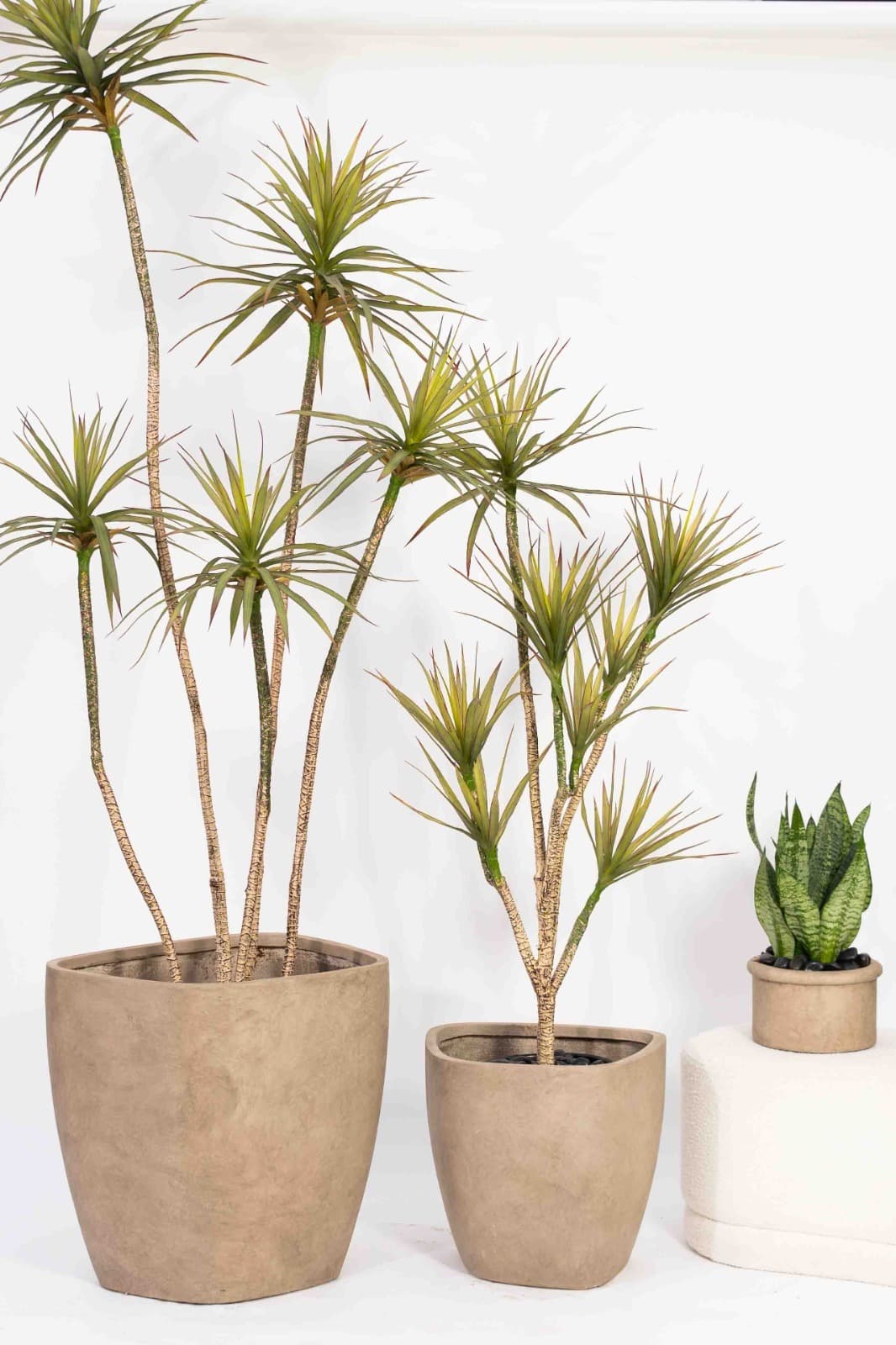 כד בטון אמורפי מעוצב ויוקרתי בשילוב דרצנה מלאכותית גדולה / ענקית
