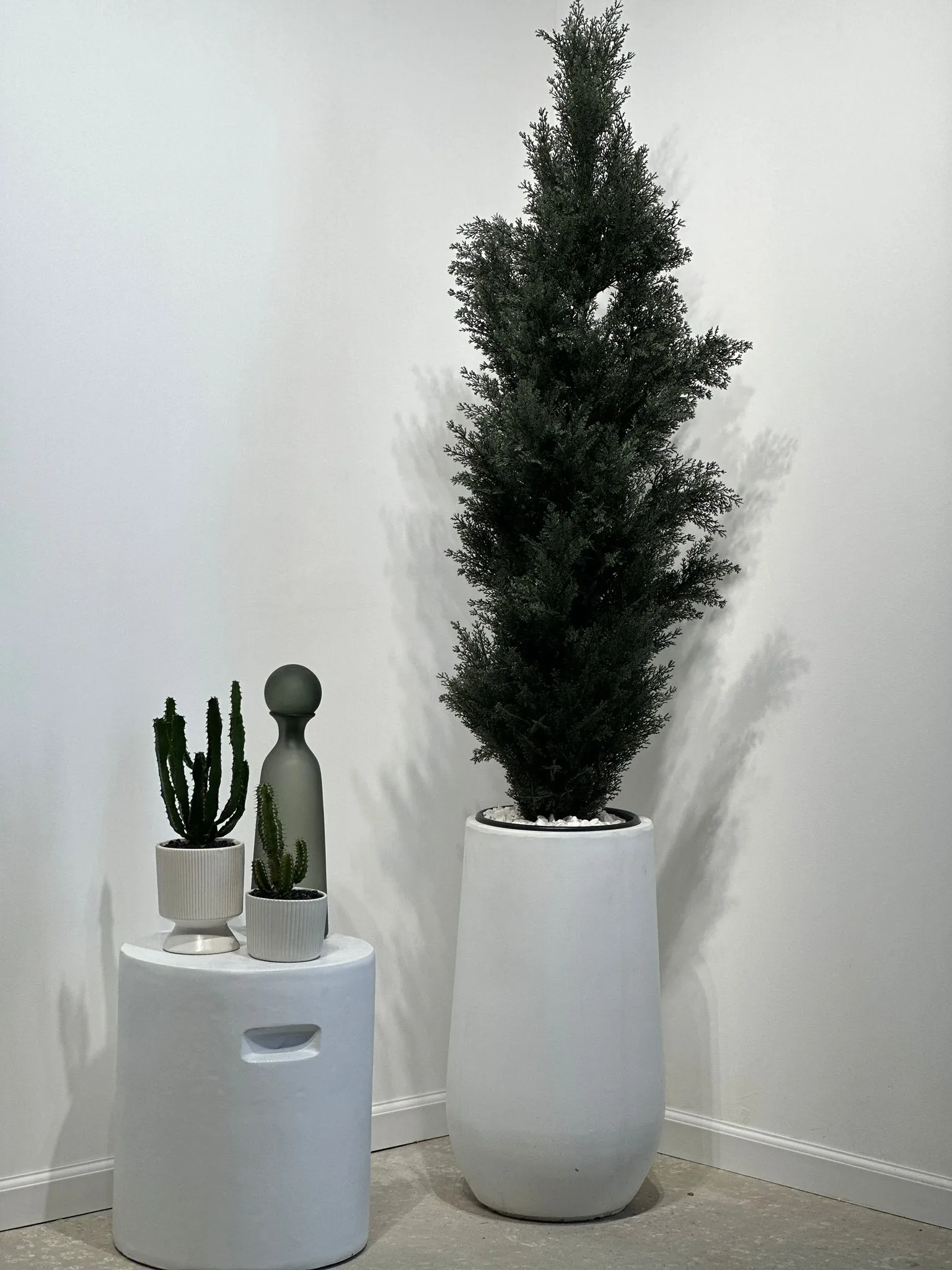 כד בטון 60 ס”מ בשילוב ברוש מלאכותי גדול