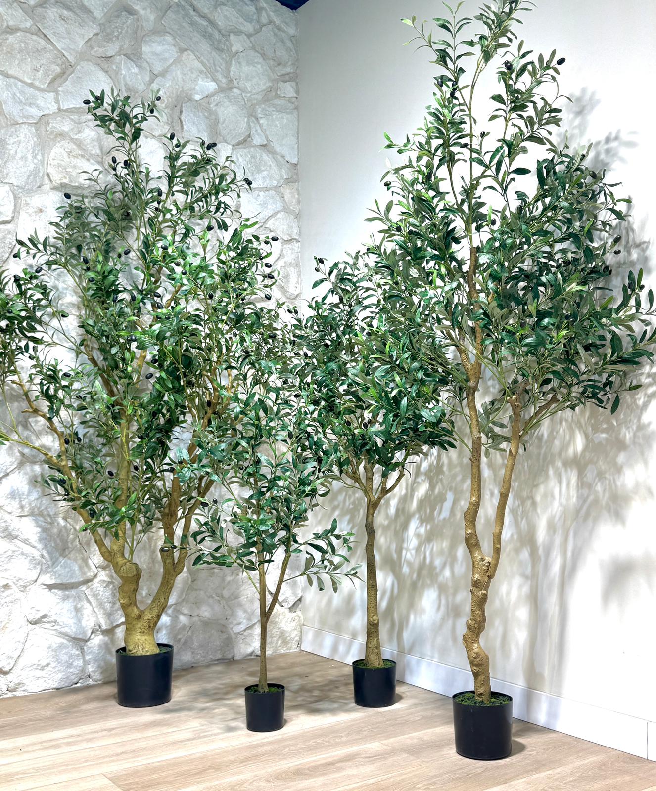 עץ זית מלאכותי מושלם בארבעה גדלים שונים , וחיפוי לבחירה.