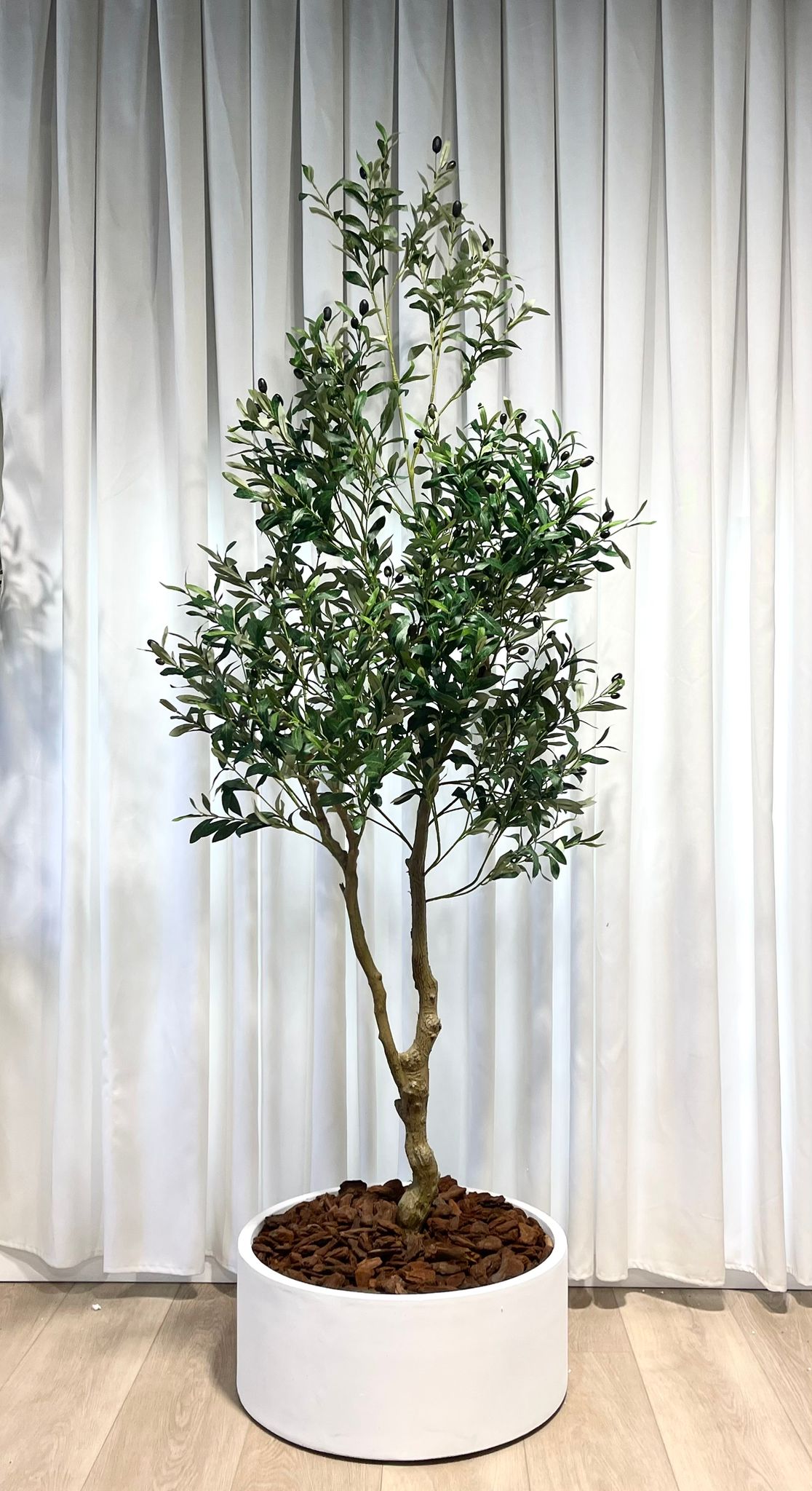 כד בטון צילינדר מושלם ומשדרג בשילוב עץ זית מלאכותי ענק