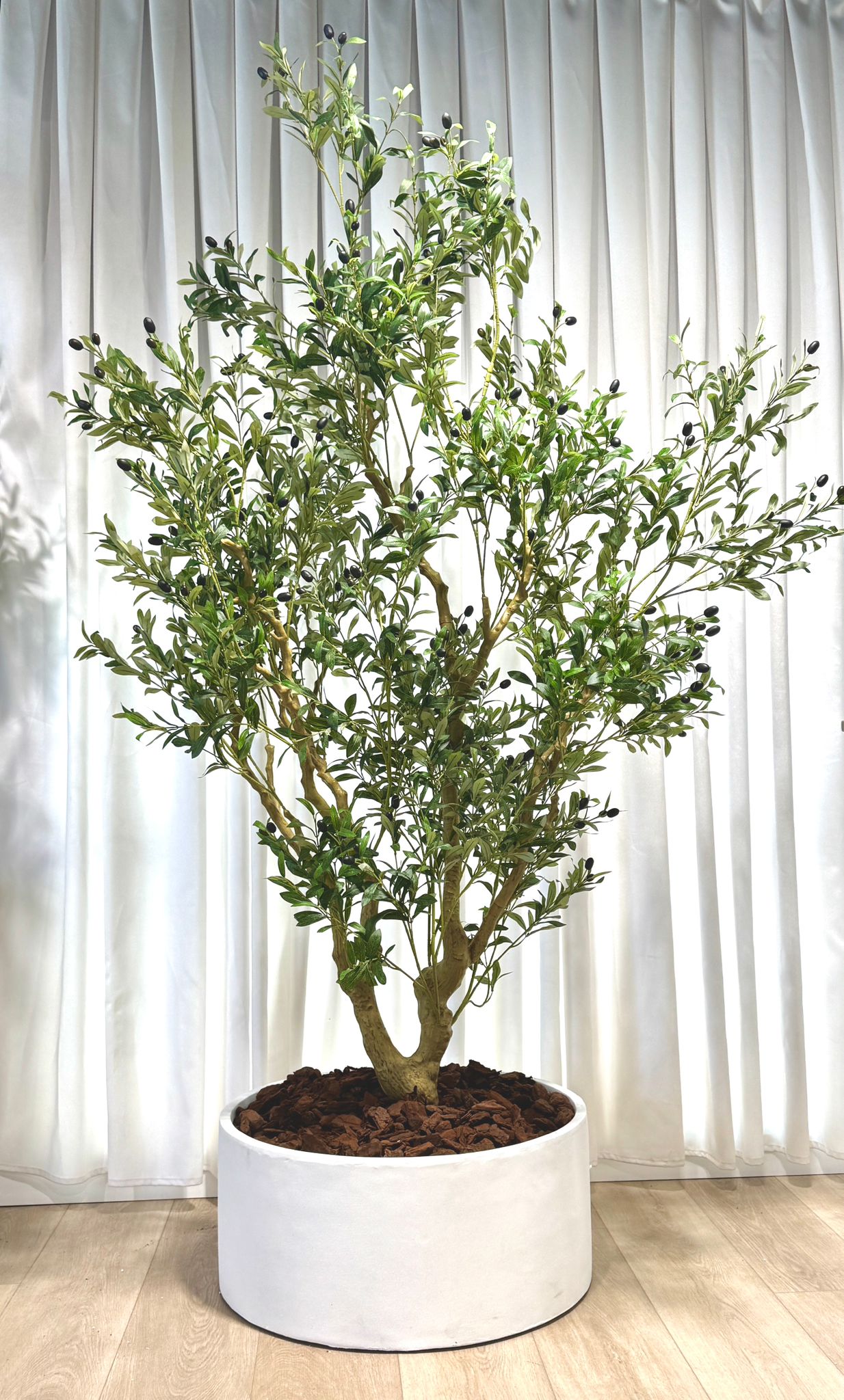 כד בטון צילינדר מושלם ומשדרג בשילוב עץ זית מלאכותי עצום