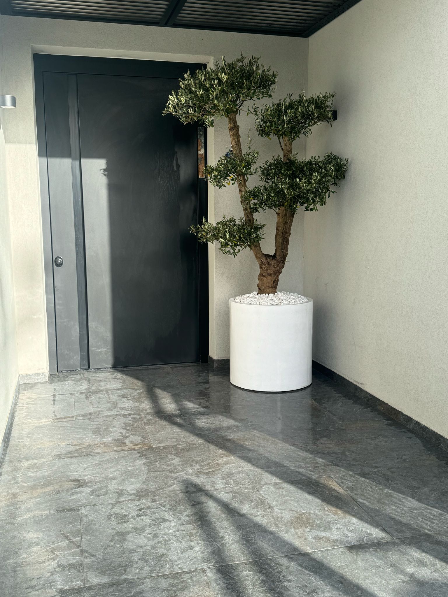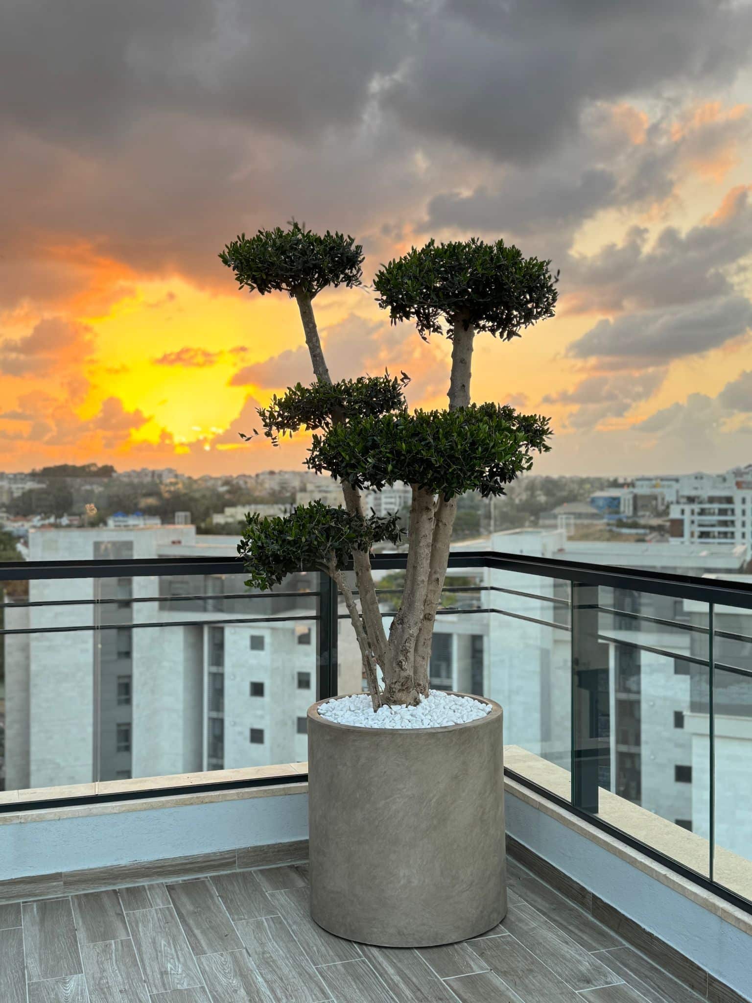 בשילוב צמח טבעי מסוג זית מעוצב בגודל ענק בן 15 שנים