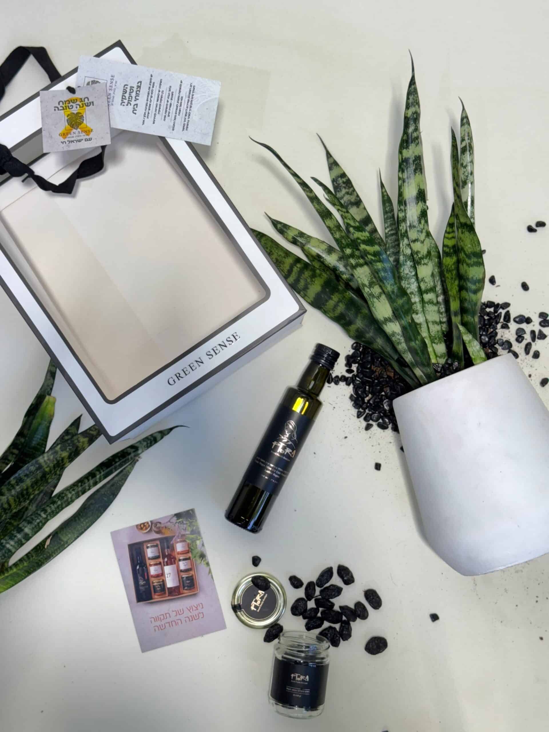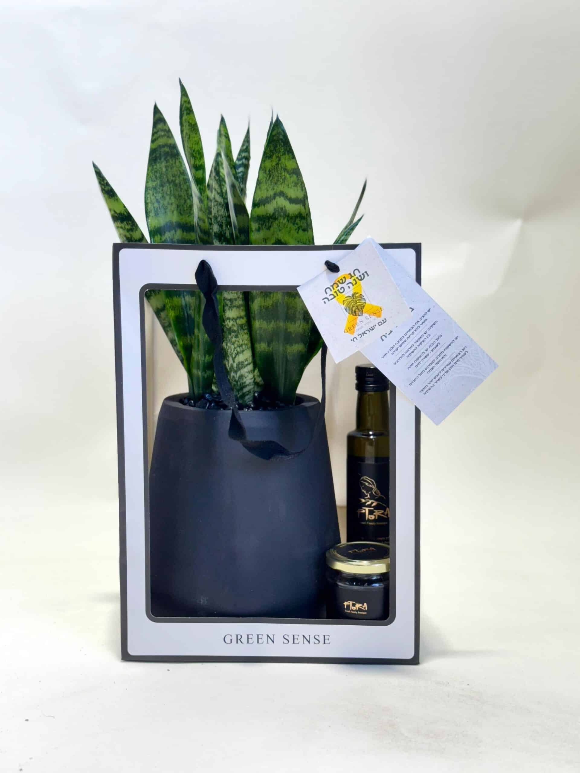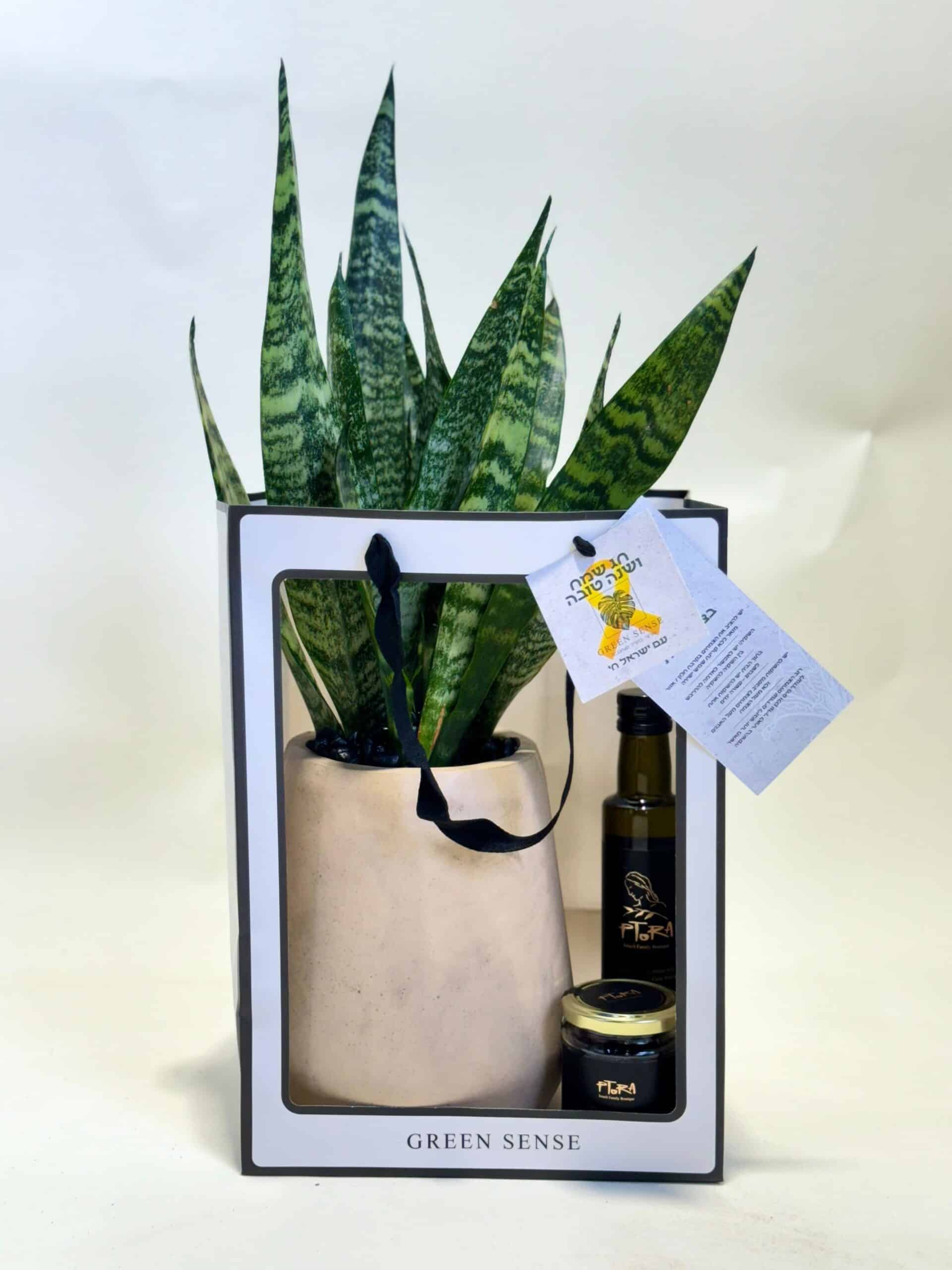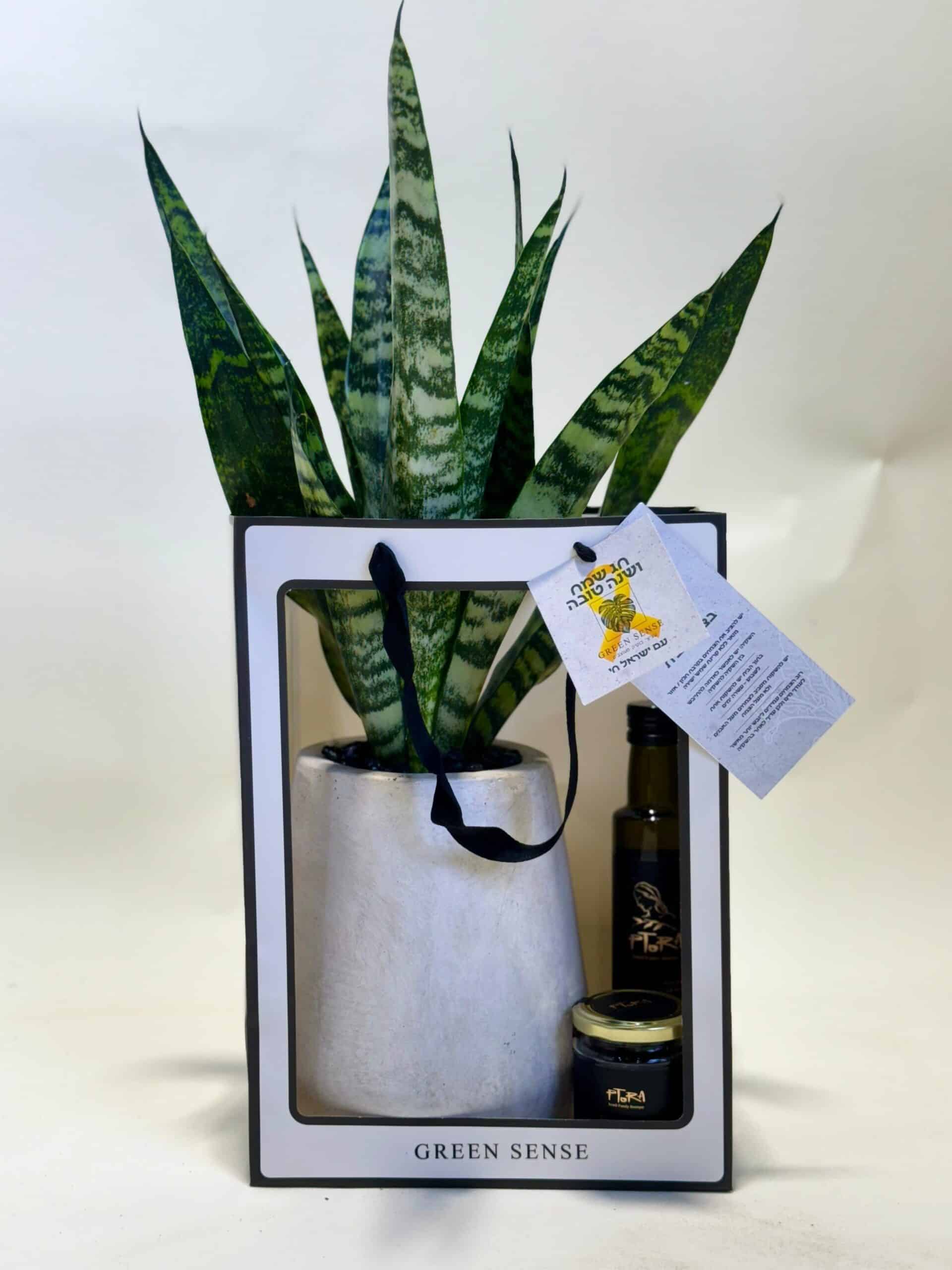 כד בטון קוני בשילוב סנסיווריה ירוקה טבעית