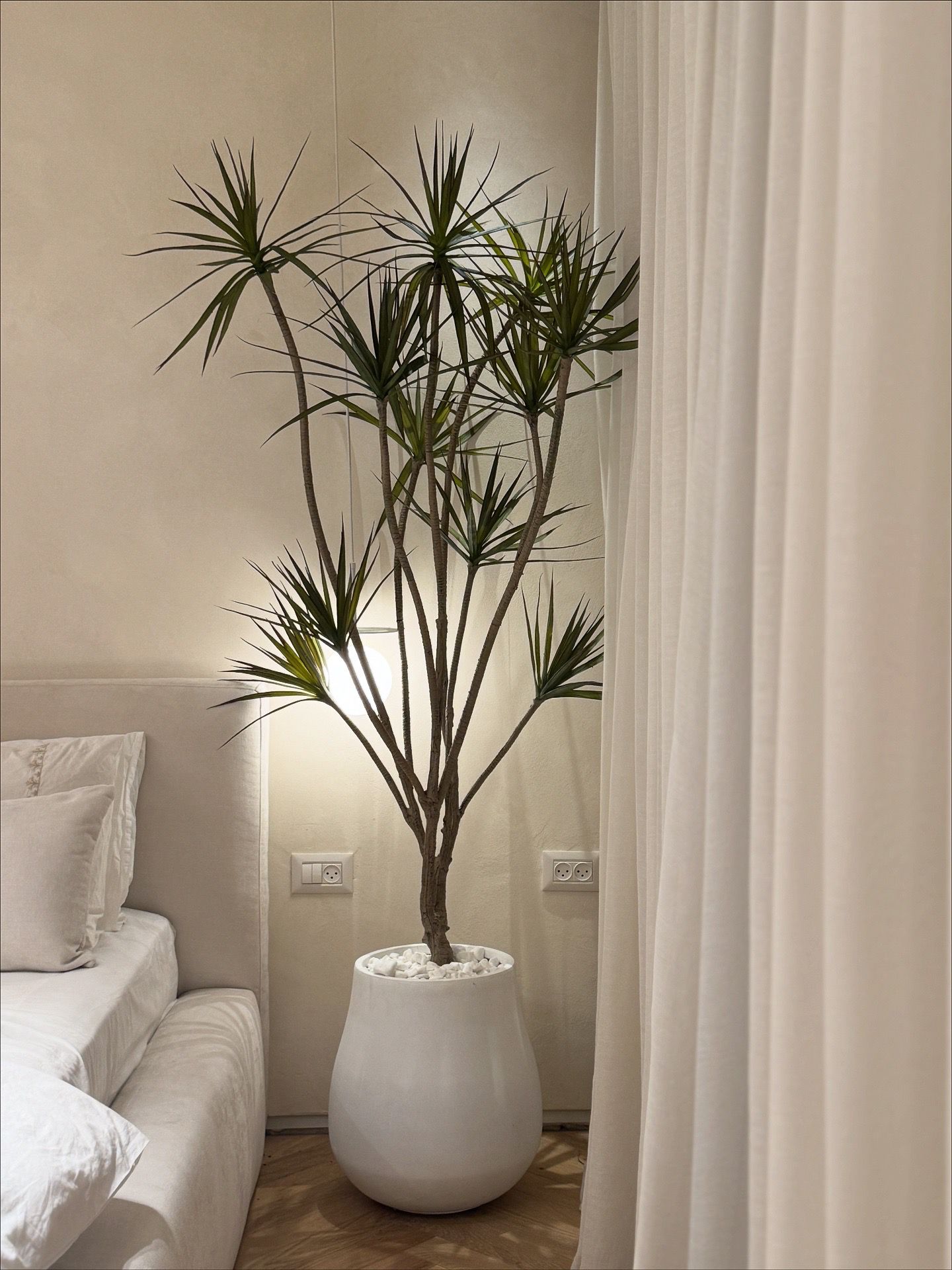 כד בטון רחב ונמוך בצורה אגסית מושלמת ומשדרגת בשילוב דרצנה מלאכותית ענקית