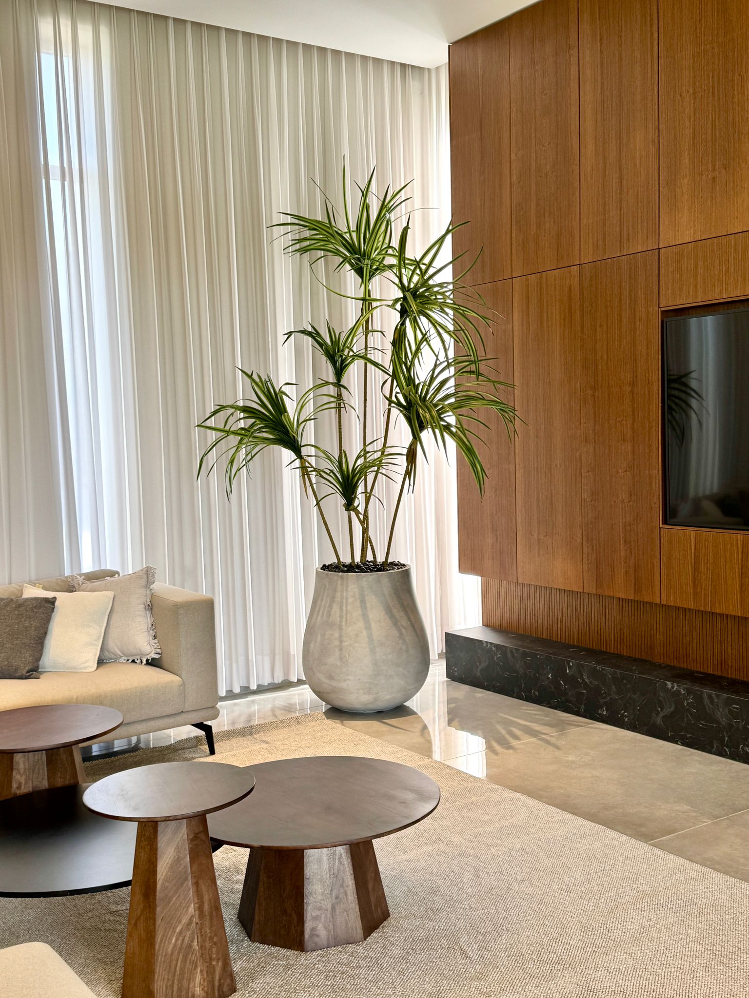 כד בטון מסוג NOVO, בגודל ענק בשילוב יוקה מלאכותית ענקית , 6 גזעים.