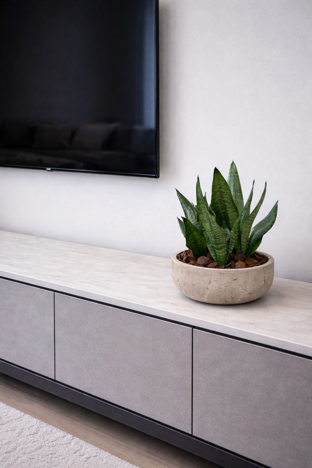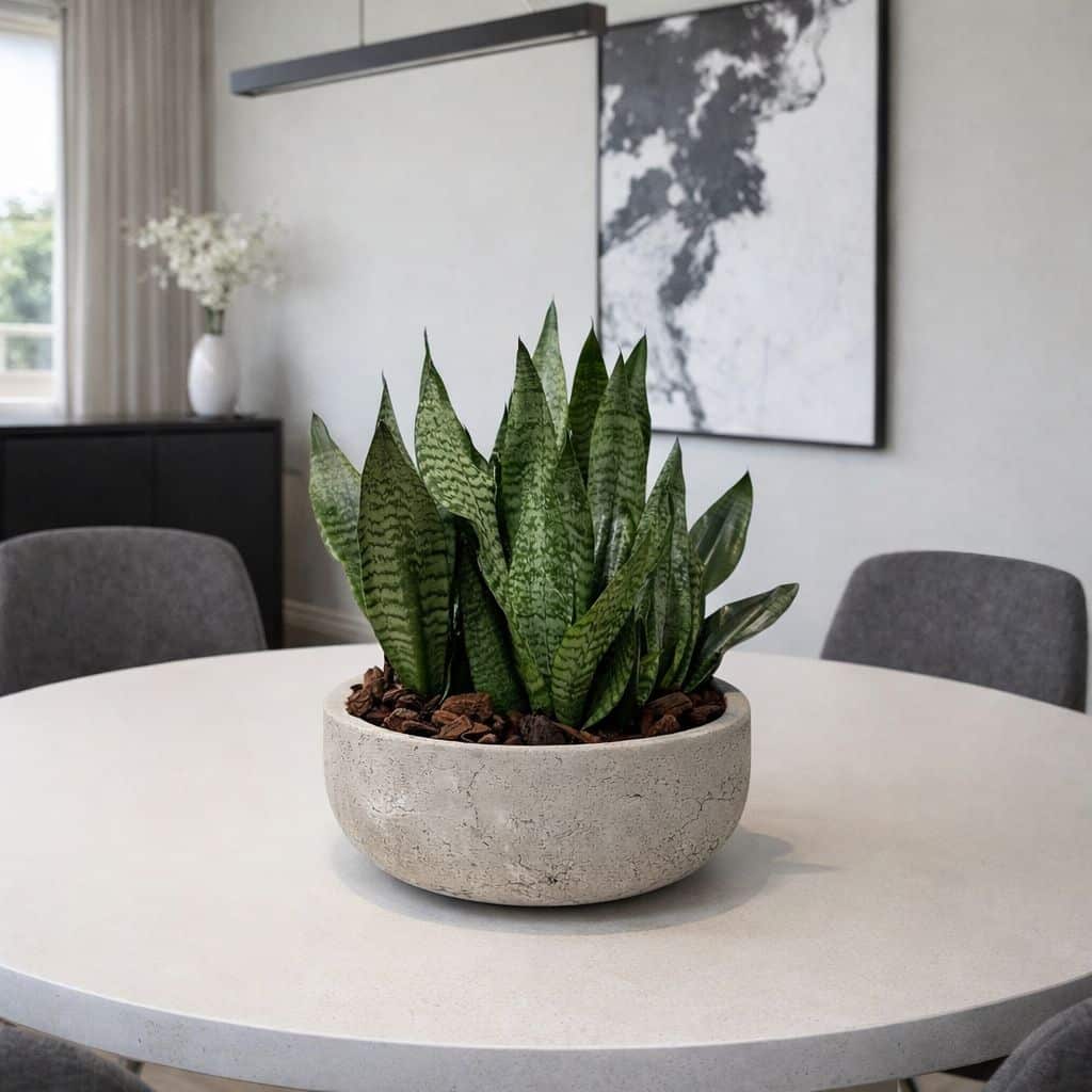 זוג כלי בטון מעוצבים בשילוב סנסיווריה ירוקה טבעית